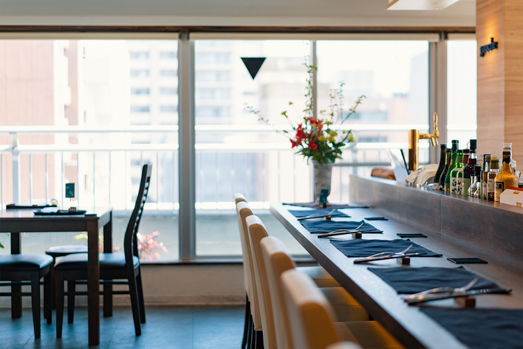 ビルの最上階に位置する創作フレンチビストロ"gauche"。